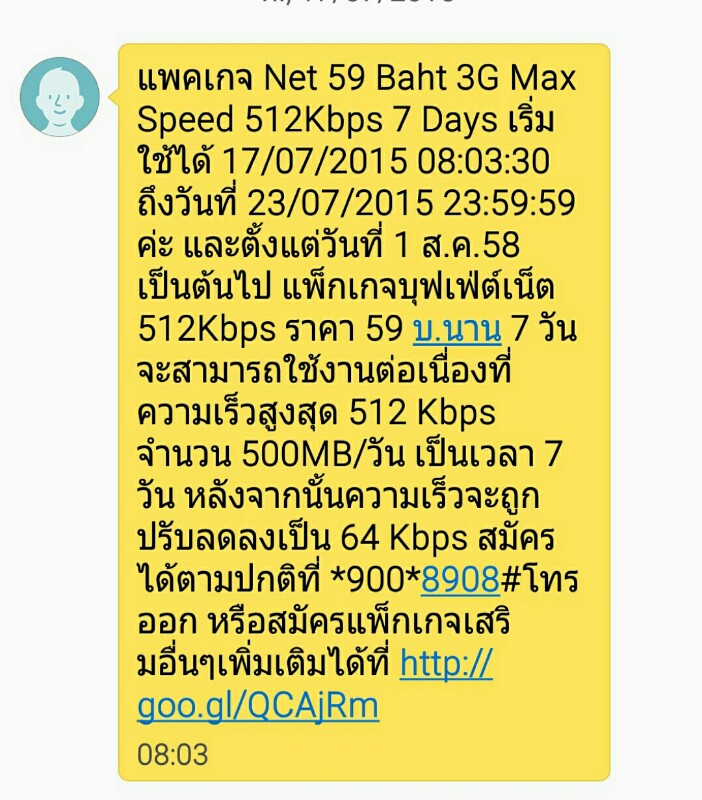 จากข้อความเป็นข้อความที่สมัครอาทิตย์ที่แล้วค่ะ เล่นได้ไม่จำกัดไม่ลดปริมาณเน็ต ข้อความที่สองเป็นสมัครอาทิตย์นี้ รู้สึกจะมี fub 64 kb แต่ใส่สลิป เติมเน็ตก็ยัง บอกเหมือนเดิมนิคะ ว่า เล่นได้ไม่จำกัด 512 k