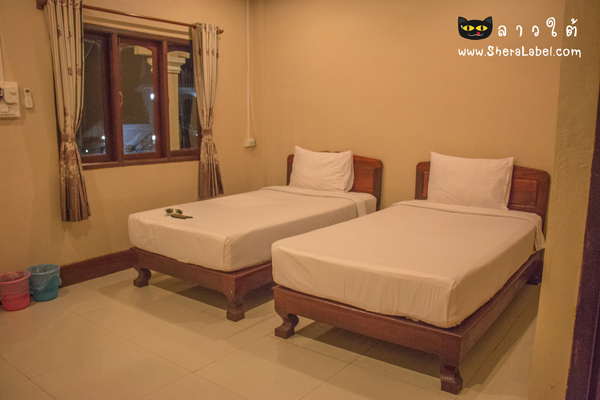 เพราะเดินทางลำบากมาทั้งวันแล้ว สรุปได้ที่นี่ตกคนละ40,000กีบ(~160บาท) ห้องพักลม