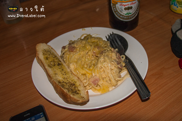 เรากินสปาเก็ตตี้คาโบนาร่ากับแพนเค้กกล้วยหอมช้อคโกแลตฮันนี่ เพื่อนสั่งบาร์บีคิวกับเบยลาวมาลองลิ้มชิมรส