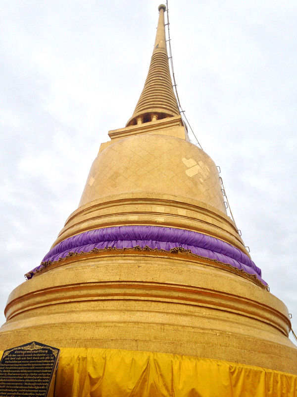เดินมาพอเข้าวัดแล้วก็จะเห็นยอดภูเขาทองด้านบนครับ วันนี้ฟ้าครึ้มๆ