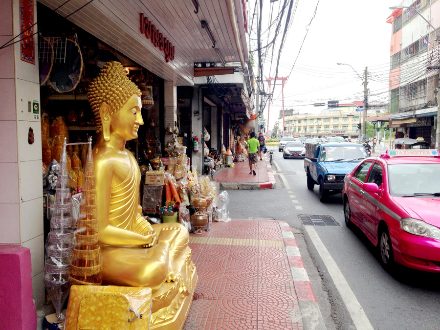 พอเข้ามาสู่ถนนบำรุงเมืองเราก็จะพบชุมชนที่ทำบาตรและพระพุทธรูปยาวตลอดทางจนถึงเสาชิงช้าเลยครับ