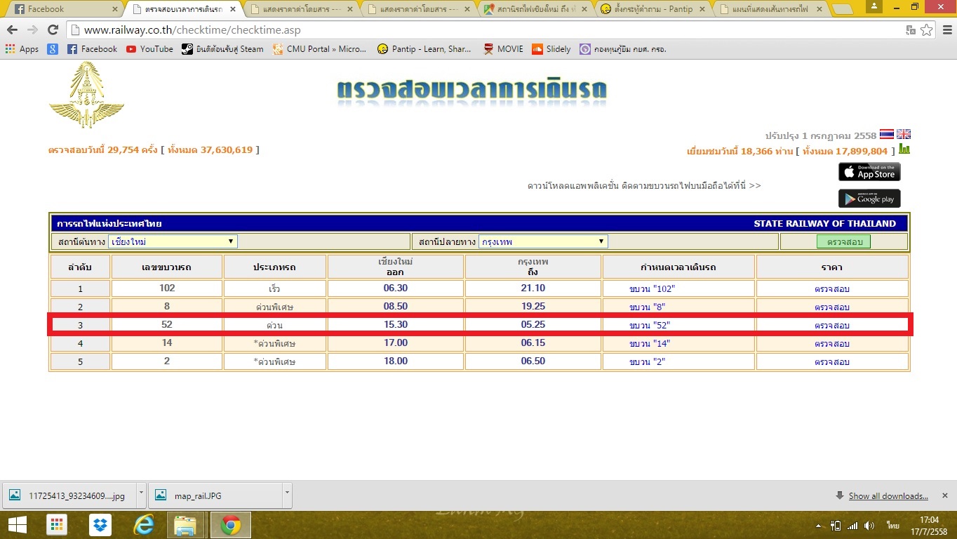 รถไขบวนที่จะขึ้นคือ 52 ชม-หัวลำโพง เวลา 15.30-05.25 น.