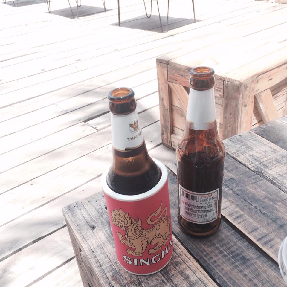 นั่งไปสักพัก คนในร้านเริ่มเยอะขึ้นเรื่อยๆ กํเลยมูฟมาด้านนอก พร้อมกับสั่งสิงห์ไปขวดนึง (ลีโอยังไม่เย็น)