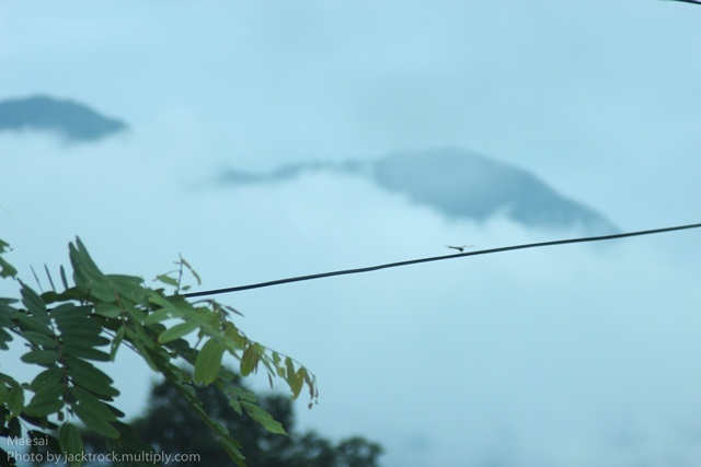ถึงแม่สายเช้าวันที่2/8/2555 อากาศชื้น ฝนตกปรอยๆ รู้สึกชุ่มฉ่ำ ทั้งกายและใจ เช้าๆ หมอกลงจัดปกคลุมภูเขา มองไป2ข้างทาง สดชื่นมากๆ