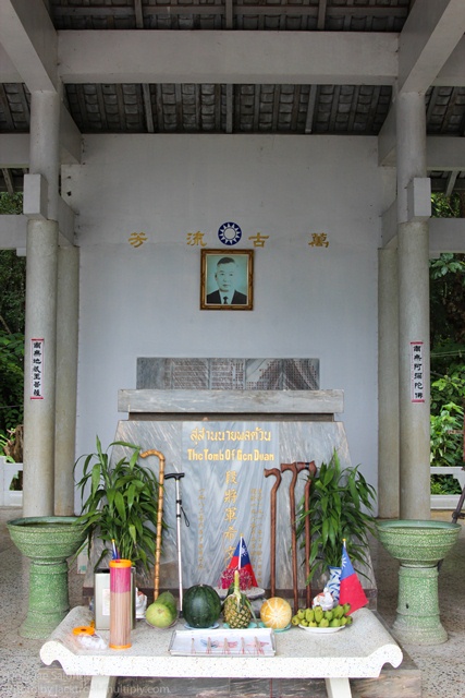 พอไปถึงข้างบน เจอคนอยู่4คน คนขายชา3คน แล้วก็คุณลุงเฝ้าสุสาน1คน คุณลุงแต่งตัวชุดทหาร แนะนำการเคารพศพ และเล่าประวัติให้ฟังด้วยน้ำเสียง แข็งขันแบบทหาร ขาลงมาเดินได้นิดนึง คุณลุงขับมอไซค์ลงมาพอดี