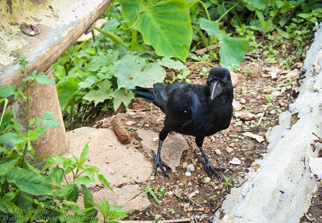 อีกาตัวนี้ดุมาก ใครเข้าไกล้มันจะไล่จิกค่ะ คนแถวนั้นเค้าบอกว่า ขนาดน้องหมามันยังไล่จิกเลย