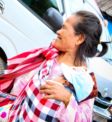 เด็กเล็กไม่มีใครเลี้ยง คุณแม่ก็ต้องสะพายใส่หลังไปด้วย