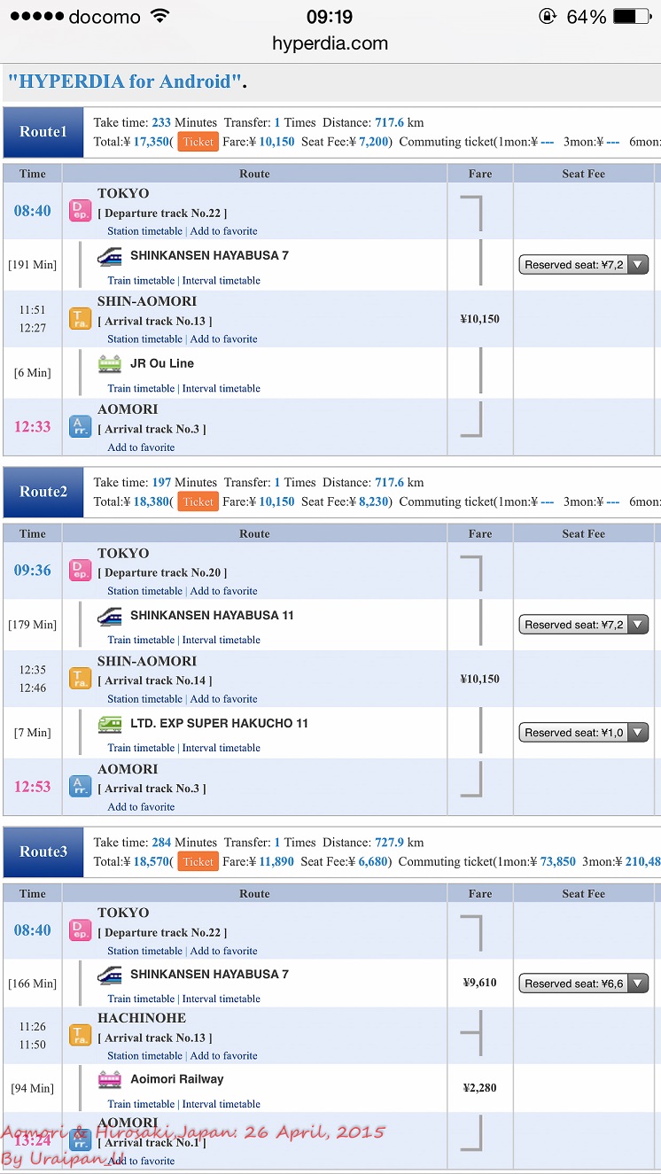 เราเลือกเดินทางที่เร็วที่สุดค่ะ ต้องรีบกันหน่อยแล้ว เพราะไปถึงก็เที่ยงกว่าๆแล้วค่ะ วันนี้ใช้เวลาเดินทางยาวหน่อย ดีที่ประหยัดเวลาได้เพราะนั่งชินคังเซ็น...นี่ขนาดประหยัดได้ยังใช้เวลานั่งตั้ง 3 ชั่วโมงเลยนะคะ
