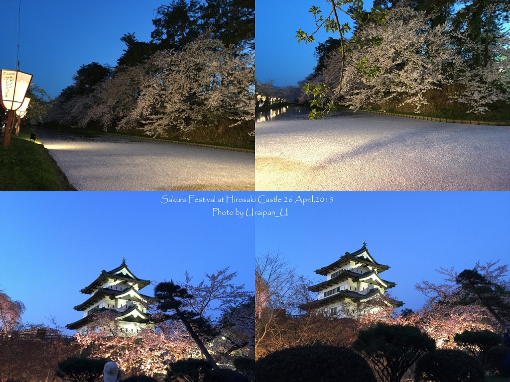 เริ่มมืดแล้ว และที่ปราสาทก็เริ่มเปิดไฟเพิ่มความสวยงามให้ต้นซากุระและตัวปราสาทให้สวยงามกว่าเดิม....อากาศก็เริ่มเย็นลงๆ จนถึงเกือบหนาว...วันนี้ได้เวลากลับไปพักผ่อนแล้วค่ะ...กลัวจะไม่ทันรถบัส...วันนี้เอาไว้แค้นี้ก่อนนะคะ พรุ่งนี้จะกลับมาพาชมอีกทั้งวันเต็มๆเลยค่ะ...เต็มอิ่มไปอีกวันกับวันที่แสนสวยงาม...เช็คเวลาที่จะนั่งรถไปด่วนพอเหมาะพอดีเราก็กลับเลยค่ะ...จากปราสาทฮิโรซากิไปสถานี เราก็ต้องนั่งบัสกลับไปเหมือนเดิมนะคะ...แล้วค่อยต่อรถไฟกลับไปอาโอโมริกันค่ะ