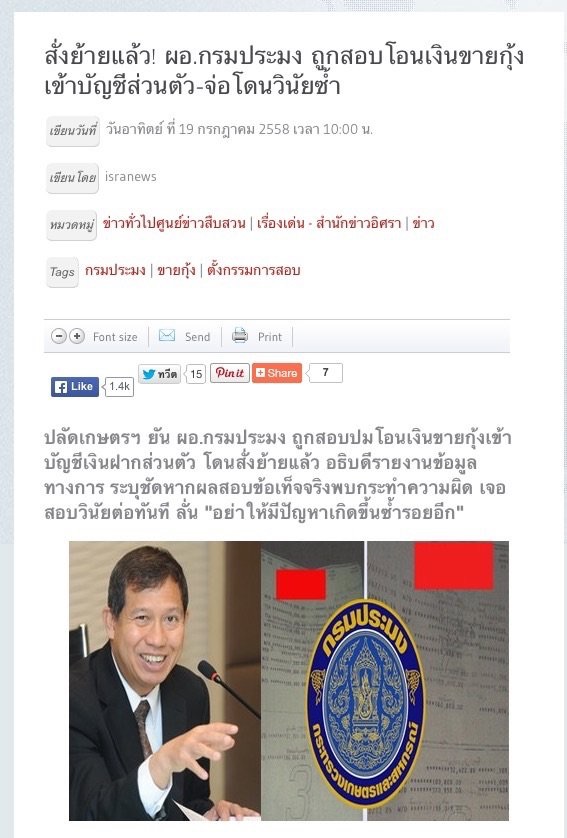 ป.ป.ช.ไม่เชือด เพราะเป็นแค่ผู้อนุมัติ
