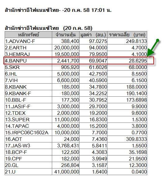 และคนซื้อก็ราคาเฉลี่ยที่ 28.xx