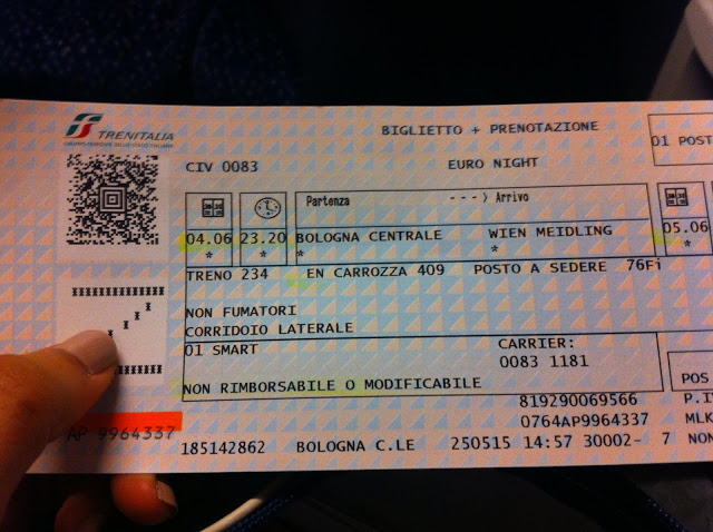 เราง่วงมาก แต่ไม่กล้าหลับสนิทเพราะกลัวของหาย ในตู้รถไฟที่เรานั่ง มี 6 ที่นั่ง แต่มีแค่คุณป้าคนอิตาลีคนเดียว ป้าใจดีมาก เห็นเราทำหน้าโง่ๆ เลยสอนวิธีกางที่นั่งในรถไฟออกมาเป็นเตียงให้ ในรถไฟมีตู้นอนแบบเป็นเตียงด้วยแต่มันแพงกว่ามาก เราเลยซื้อตั๋วนั่ง เพิ่งรู้ว่าที่นั่ง 2 ตัวกางออกมาชนกันเป็นเตียงได้ เก๋อยู่นะ