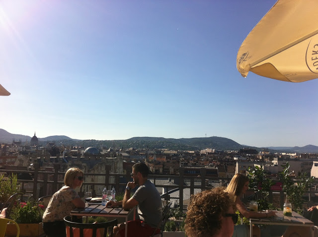 เราลงจากเขากลับมาในตัวเมืองฝั่งเปสต์ เราบอกทางไม่ได้เพราะเดินตามบาร์บี้อย่างเดียว (ค่ะ ถ้านี่เป็นไกด์บุ๊ค จะเป็นไกด์บุ๊คที่แย่มาก 555) บาร์บี้พาเราขึ้นลิฟท์ไปที่ 360 Bar เป็นบาร์บนดาดฟ้าของตึกสูงที่เห็นวิวสวยๆของบูดาเปสต์ทั้งเมือง โอ้โห ได้อารมณ์กว่าดูวิวบนเขาอีก