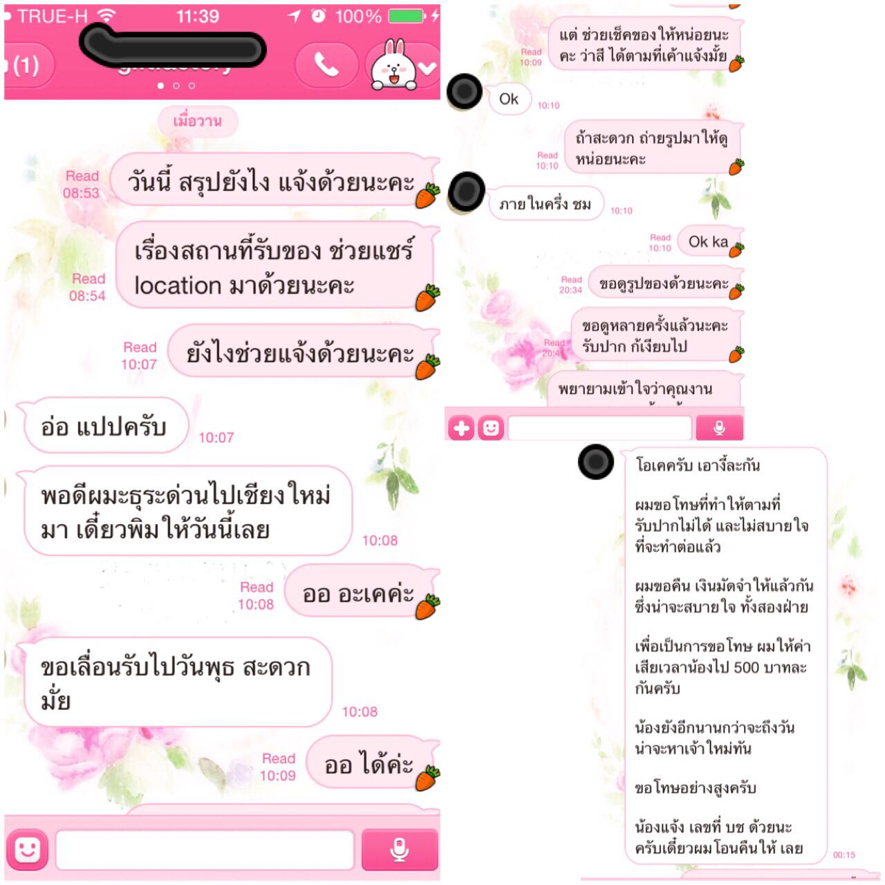 จนถึงวันนัดรับ เราทักไป สรุปจะได้ของวันนี้มั้ยคะ ขอดูรูป เหมือนเดิม...คือร้านก็ตองมาว่า ต้องไป ตจว ขอเลื่อนไปอีก 2 วัน ทางเราก็...โอเค นะคะ แต่เราขอดูรูปค่ะ ซึ่งทางร้าน ก็ไม่ส่งมาให้เราเหมือนเดิม จนเราก็เริ่มจะไม่ทน !! จนเริ่มถามร้าน ทำไมถามไปก็เงียบ ขอดูรูปก็เงียบ จนเค้าตอบมา แบบไม่ง้อเลย