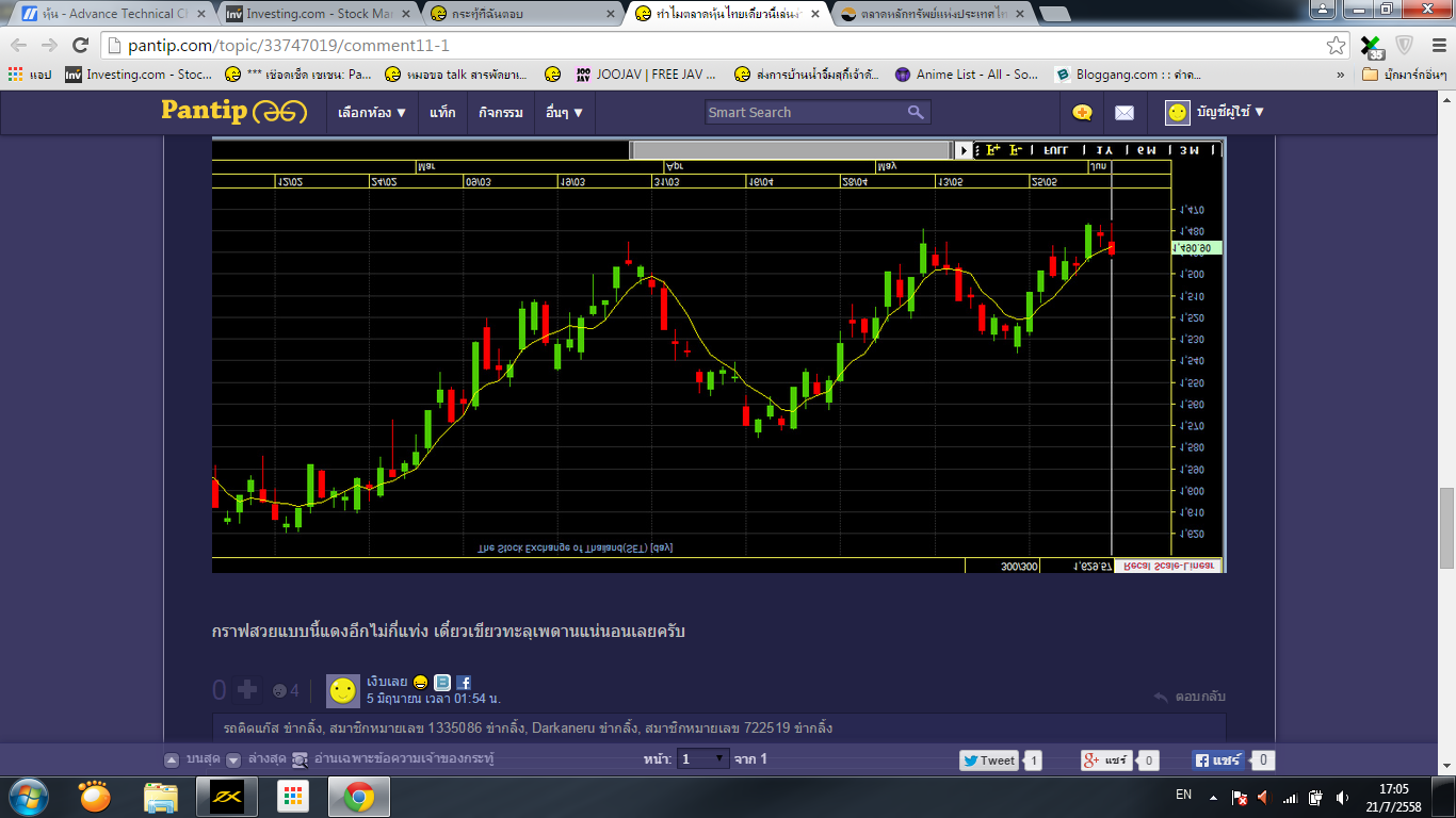 มันแต่ดูเส้นไปมา ดู MACD EMA ดูโน่นดูนี่ หลุดตรงนั้นจะลงไปนี่ หาข่าวร้ายมาตั้งแต่ตลาดปิด แทนที่จะไปหาหุ้นกราฟสวยๆ มาเล่นมัวแต่ไปกังวล Set สุดท้ายก็เงิบ ตกรถอีกวัน 55+