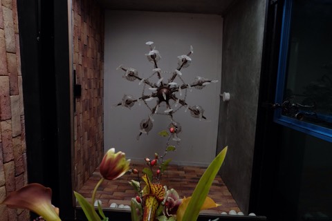 ตามด้วยการแหงนหน้าขึ้นไปมองโคมไฟ