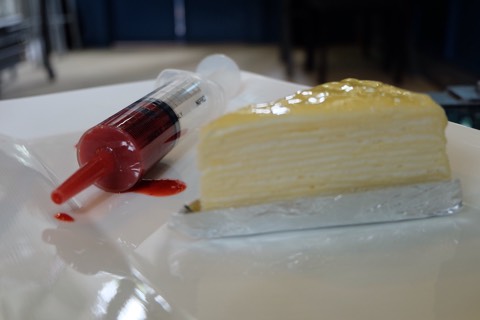 อีกเมนูนึง crepe cake with bloody strawberry (มั่วชื่อละ 5555) ลืมชื่ออ่าาาา เอาเปนว่ามันคือเครปเค้กนะคะ อิอิ