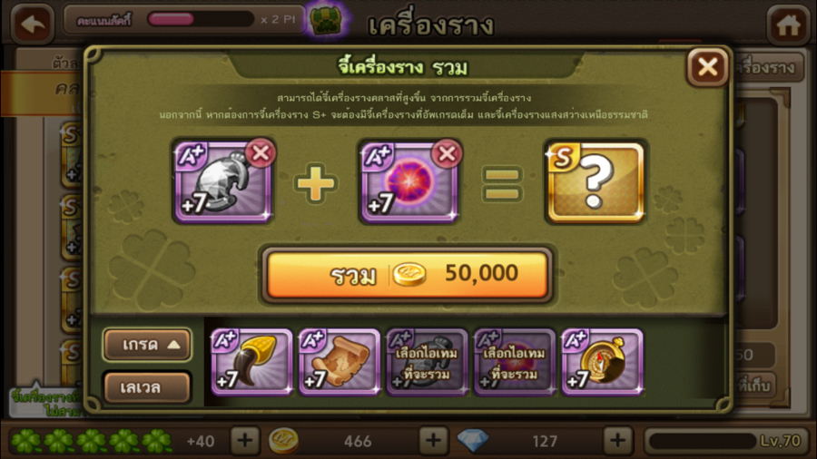 คือเราอัพจี้เครื่องราง เหรียญราชวงศ์ที่ทำให้เราได้เงินเพิ่มเวลาเราผ่านรอบแรก ของเราเป็น S +5 ถ้าเล่นแบบ 10 M เราได้เงิน 5 ล้าน 7แสน แต่ของคนอื่นแค่ S +3 บางคนก็ได้ 6ล้าน 9 แสน เราเลยลองเปลี่ยนมาเป็