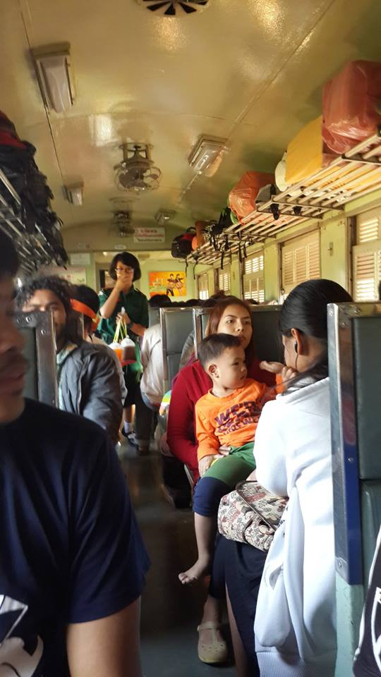 บอกไว้เลยตรงนี้เลยว่า...ช่วงกรุงเทพ – อยุธยาคนแน่นสุดๆ ทั้งไทยทั้งต่างชาติใช้บริการรถไฟไทยเพื่อการท่องเที่ยว(น่ายินดีมากครับ)...ในรูปจะเห็นน้องเนตนารีเสื้อเขียวมาขายน้ำหวานบนรถไฟ อยากบอกว่าประทับใจพวกพี่สุดๆ ก็เลยอุดหนุนน้องเขาคนละนิดคนละหน่อย... ซื้อนะครับไม่ได้ปล้น 5555