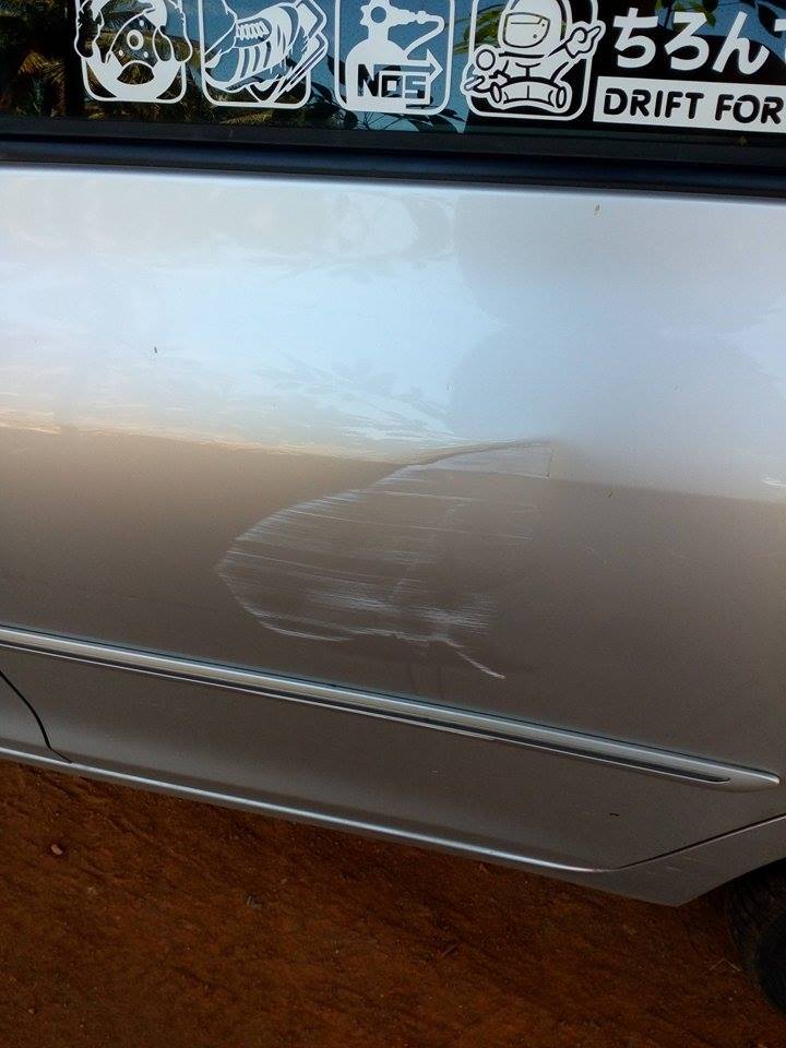 พอดีน้องขับรถไปเบียดเสามา ไม่ทราบรอยนี้ใช้น้ำยาขัดได้ไหมคับ หรือเคลมประกันดีคับ