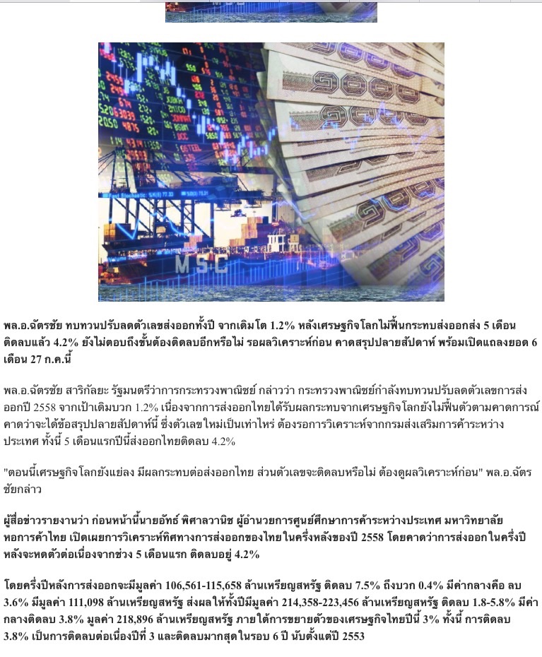 😎😎--น้องใหม่แปะข่าว--"ลดเป้าส่งออก! ศก.โลกไม่ฟื้นกระทบ5เดือน ติดลบ4.2%"--😎😎