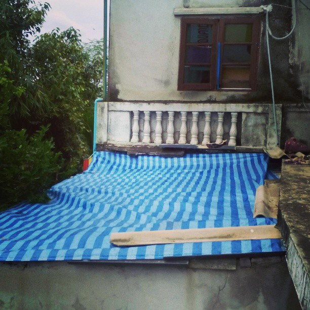 จากรูป หรือหลังคาห้องครัวค่ะ ที่ตอนนี้หลังคารั่วจากฝนตก เลยต้องแก้ปัญหาเฉพาะหน้าไปก่อนคะ