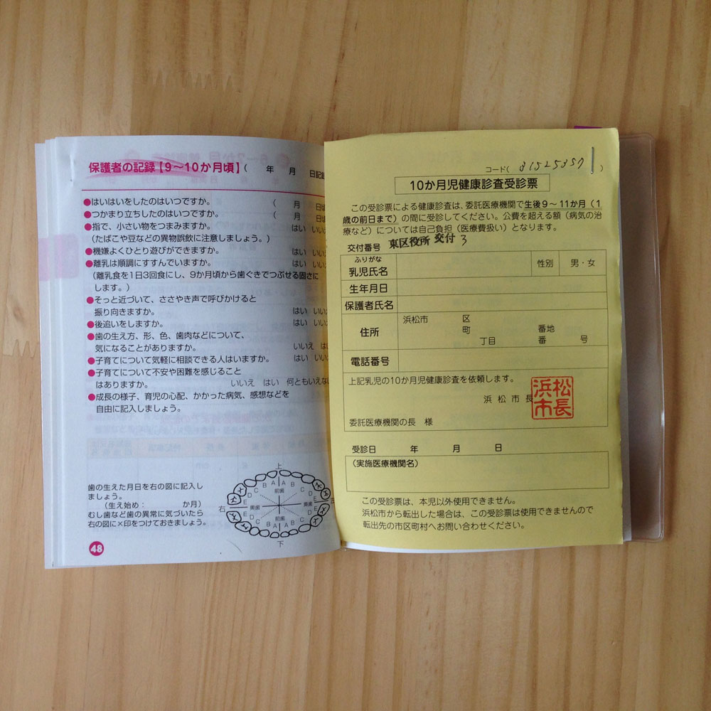 (ในรูป หน้าซ้ายคือแบบสอบถาม ให้เขียนเตรียมไว้ก่อนไปตรวจค่ะ ด้านขวาคือคูปองตรวจสุขภาพอายุ10เดือน)