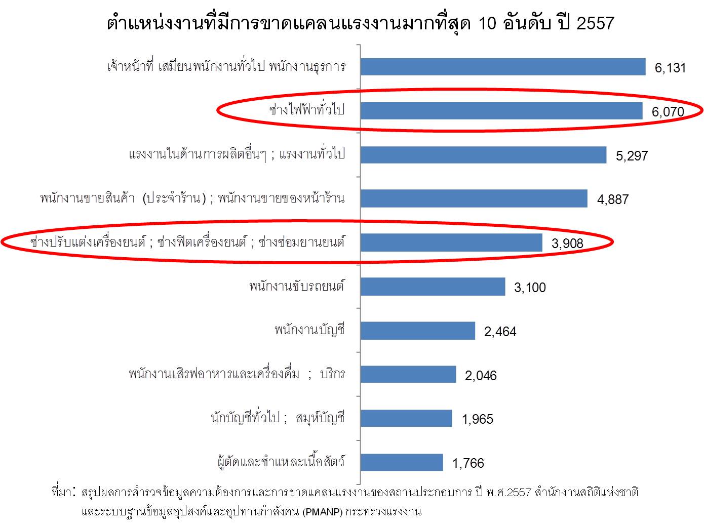 จากข้อมูลของสำนักงานสถิติแห่งชาติและระบบฐานข้อมูลอุปสงค์และอุปทานกำลังคน (PMANP) กระทรวงแรงงาน พบว่า ช่างเทคนิค เป็นตำแหน่งงานลำดับต้นๆ ที่ตลาดแรงงานกำลังขาดแคลน