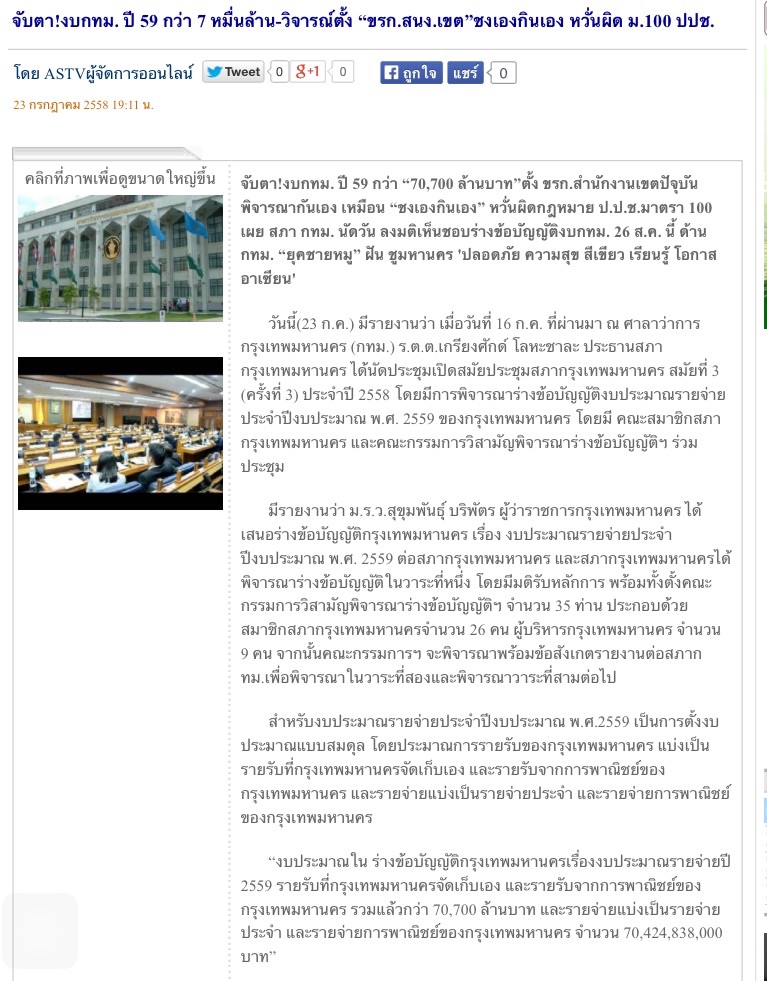 😋-- จับตา!งบกทม. ปี 59 กว่า 7 หมื่นล้าน-วิจารณ์ตั้ง “ขรก.สนง.เขต”ชงเองกินเอง --😋