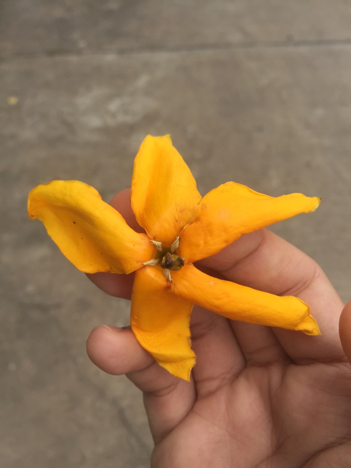 ไม้ยืนต้น ออกดอกสีเหลือง ตอนยังไม่บานเป็นตุ่มกลมๆ ขนาดเล็กกว่าลูกปิงปอง กลีบดอก 5 กลีบ เกสรฟูๆ บานตอนกลางคืน สายเริ่มโรยแล้วค่ะ รบกวนถามผู้รู้ว่าต้นอะไร มีเพื่อนบอกพุดภูเก็ต แต่ลองเทียบรูปแล้วไม่เหมือ