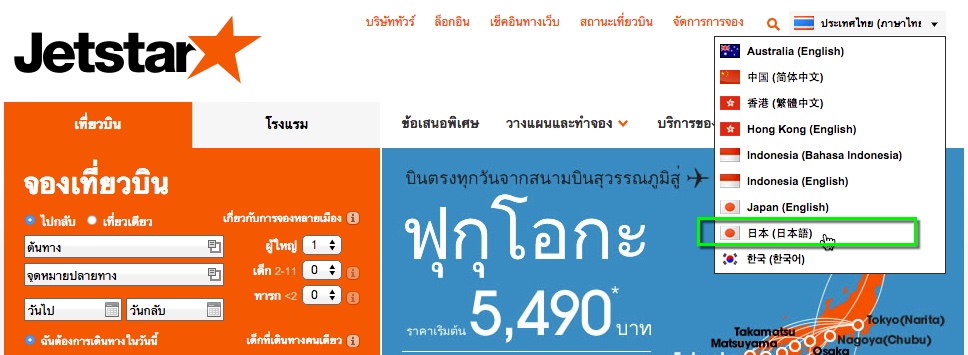 Web “Jetstar Japan” จะมี 2 ภาษาให้เลือกคือภาษาอังกฤษ และ ภาษาญี่ปุ่น ซึ่งแน่นอน ผมอ่านภาษาญี่ปุ่นไม่ออก พูดไม่ได้ แต่ด้วยความสามารถของ Web Translate ผมจะจองผ่าน Web ภาษาญี่ปุ่น