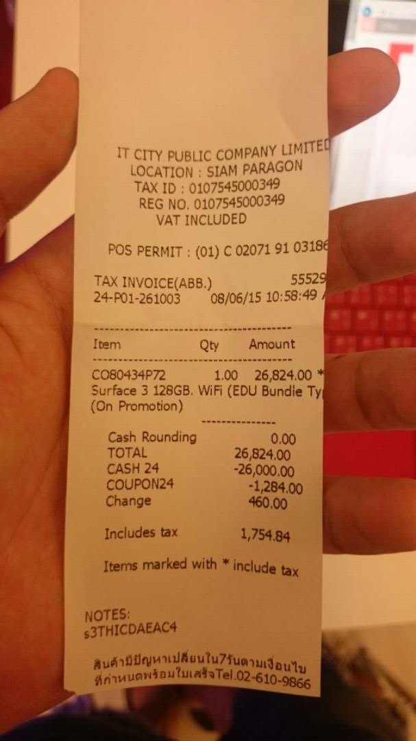 เมื่อวันที่ 8 มิ.ย. ผมได้ซื้อ surface 3 พร้อมคีย์บอร์ดและปากกา(surface pen) ด้วยโปรโมชั่นนักศึกษาที่ It city paragon ครับ