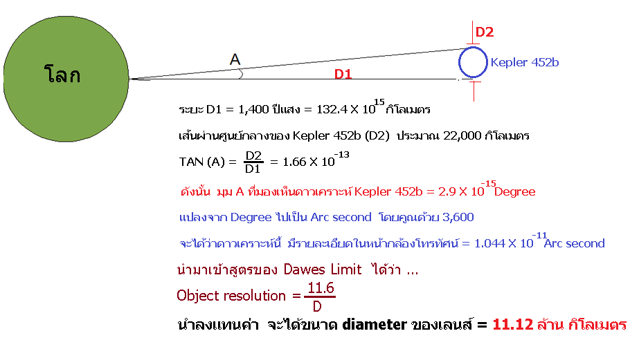 ใช้มาตรฐานของทฤษฏี Dawes' limit สำหรับกล้องโทรทรรศน์ในการมองวัตถุอวกาศ