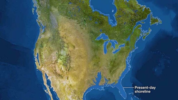 ภาพต่อไปนี้คือภาพแผนที่จำลอง ที่แสดงถึงระดับน้ำทะเลเพิ่มขึ้น 27 เมตร เมื่อหิมะละลายจนหมดโลก ต่อไปนี้อาจเป็นภาพแผนที่ใหม่ของโลก