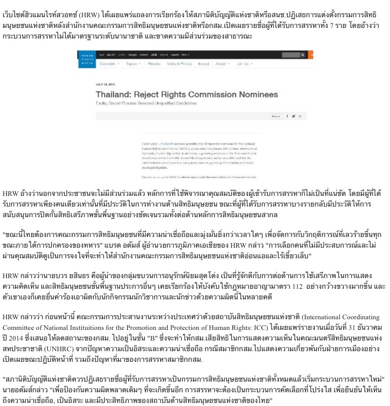 🚨--HRW เรียกร้องไทย "อย่ารับรองการแต่งตั้งกรรมการสิทธิ" ชี้ไร้ประสบการณ์, ขาดคุณสมบัติ--🚨