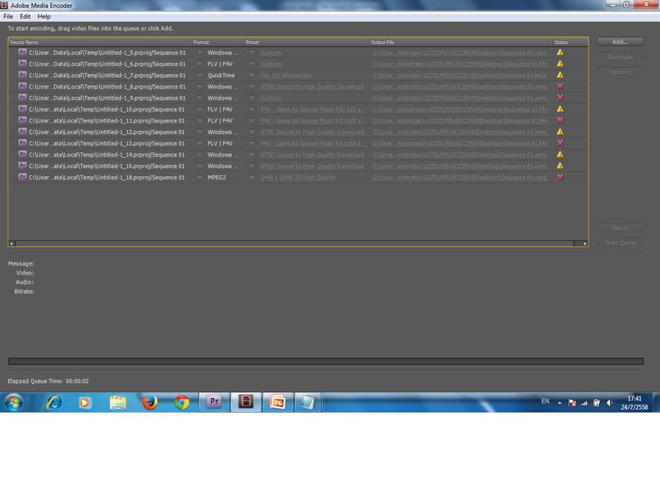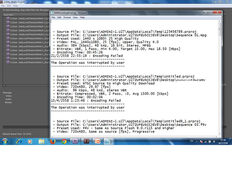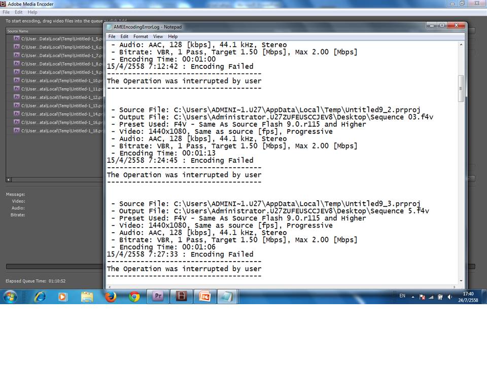 Export ไฟล์จาก Premier pro ไป Adobe Media Encoder ได้ แต่ไฟล์ไม่สำเร็จ
