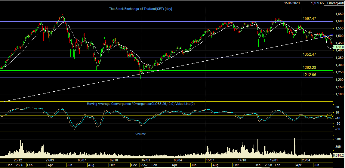 แนวรับ SET Index : 1350 , 1250 (คาดการณ์ตามทฤษฎีทางกราฟเทคนิค)
