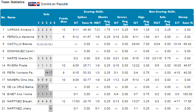 หลังจากปีที่แล้ว Dominican Republic ตกลงไปเล่นใน Group 2 ในปีนี้ดูเหมือนฟอร์มการเล่นไม่ค่อยดีนัก เปิดตัวด้วยการแพ้ Bulgaria ไปอย่างน่าเสียดาย แต่สุดท้าย ก็กลับมาชนะ Bulgaria อีกครั้งใน week 2 และหลัง