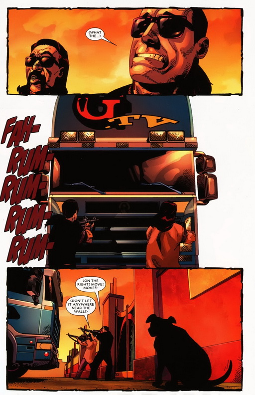 เดดพูล: แหม่ ฉันก็แค่สร้างบรรยากาศให้งานนี้มันดูสมกับเป็นมืออาชีพหน่อยไง และที่ไม่โดดออกไปก่อนเพราะซ่อนอยู่ในโถส้วมท้ายรถนี่มันออกมาลำบากนะ