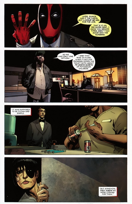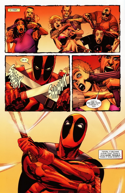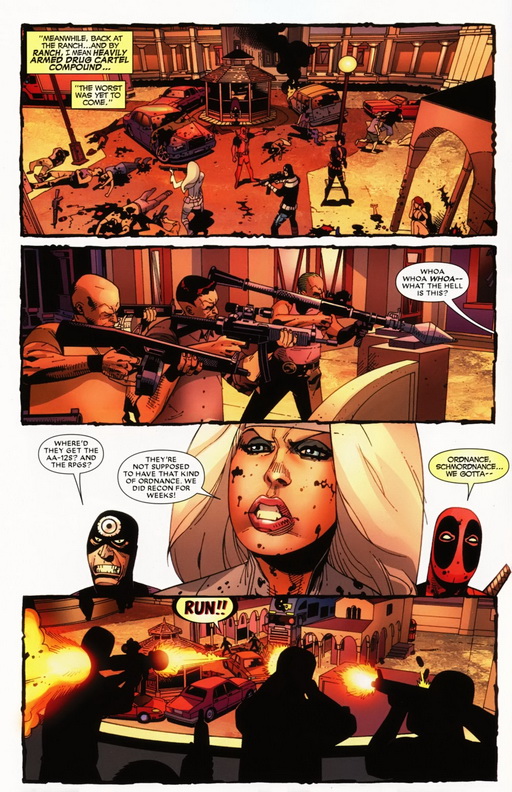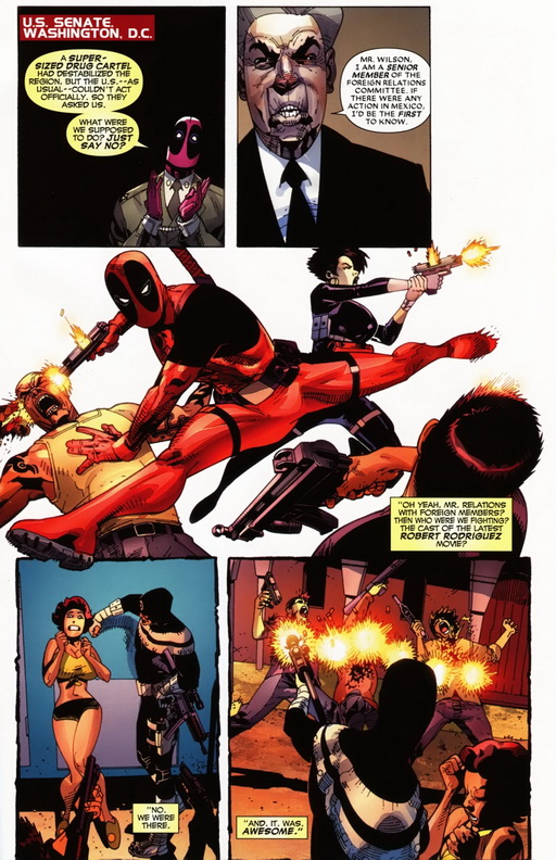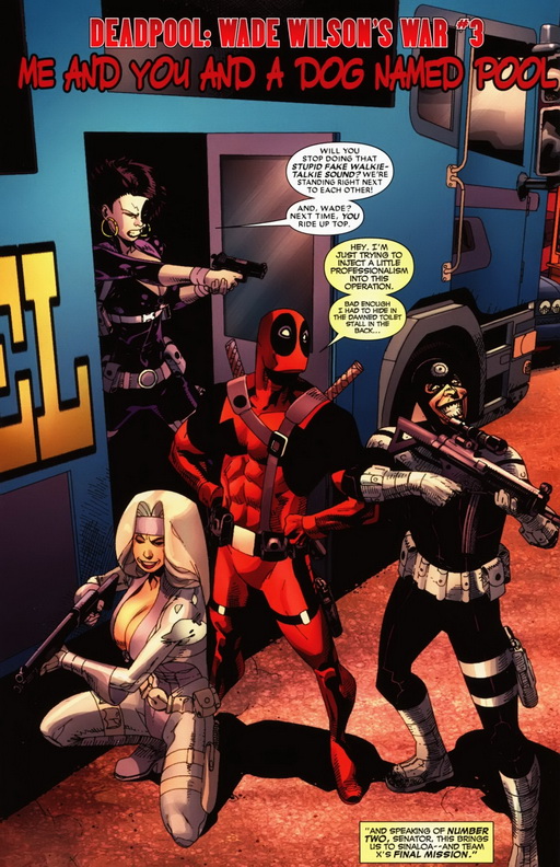 เดดพูล: ช่วงนี้มีแก๊งค์ค้ายาขนาดโคตรใหญ่แผ่อิทธิพลอยู่แถบชายแดน แต่รัฐบาลอเมริกาออกหน้ามาจัดการเองไมได้ ก็เลยจ้างพวกเราให้ไปจัดการมัน