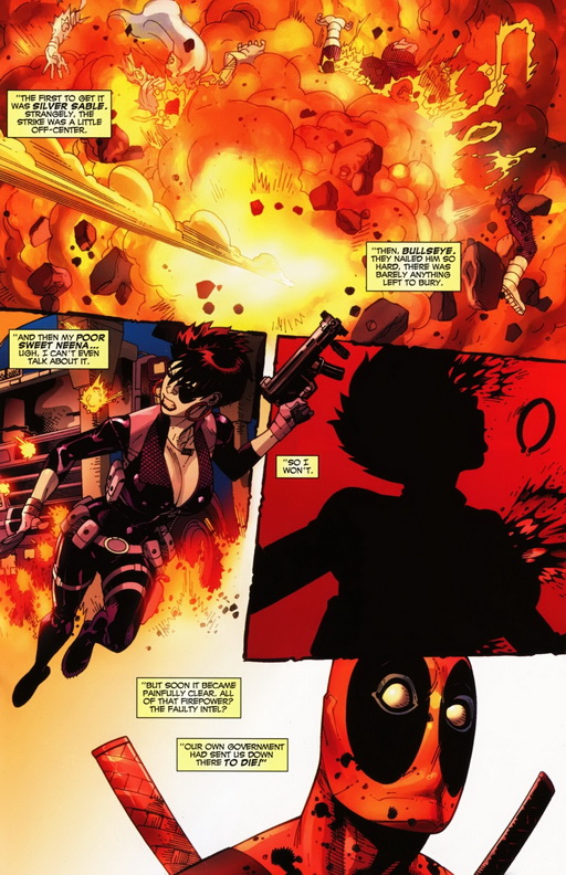 เดดพูล: คนแรกที่โดนคือซิลเวอร์เซเบิ้ล น่าแปลกที่กระสุนเหมือนจะเบี่ยงไปนิดหน่อย