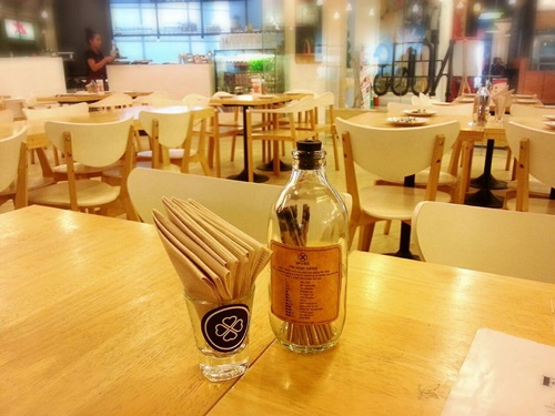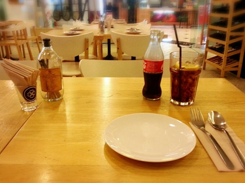 ก่อนหน้านี้ก็เคย่านร้านนี้เหมือนกัน แต่ไม่โอกาสได้ใช้บริการ วันนี้มาคนเดียวก็เลยขอลองซะหน่อย บรรยากาศร้านค่อนข้างดีนะครับ จัดแบบโล่ง ๆ เน้นโทนสีแบบอบอุ่น ๆ หน่อย แต่รูปที่ถ่ายมานี้ เป็นช่วงที่ห้างนี้เค้ากำลังก่อสร้างเลยมีการปิดบางส่วน ทำให้แสงไม่ค่อยเข้า เพราะก่อนหน้านี้จำได้ว่ามีมุมติดกระจกที่เห็นวิวด้านนอกด้วย