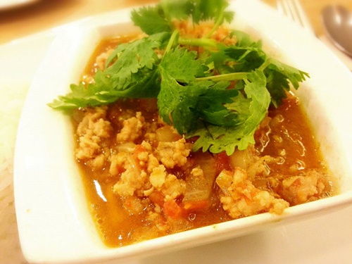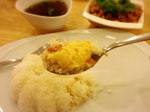 นี่คือหน้าตาไข่ตุ๋นทรงเครื่อง ตอนแกรตกใจนึกว่าสั่งผัดเปรี้ยวหวานหมูสับ เพราะเนื้อหมูกลบไข่หมดเลย ถ้าให้เปรียบเทียบให้เห็นภาพง่าย ๆ ก็คือ คล้ายกับเมนูไข่ยัดไส้ แต่เปลี่ยนจากไข่เจียวเป็นไข่ตุ๋นครับ รสชาติดีให้ผ่าน ตัวเนื้อไข่ตุ๋นไม่จืดจนเกินไป ส่วนที่เป็นทรงเครื่องชิมเพียว ๆ แล้วออกรสจืดไปหน่อย แต่ถ้าทานคู่กับไข่ตุ๋นนี่กลมกล่อมใช้ได้ครับ