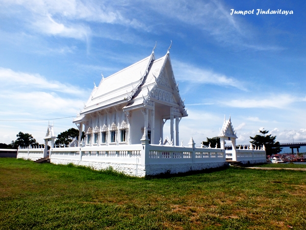 ช่วงริมฝั่งสะพานสมเด็จพระเจ้าตากสินฯ จะเห็นวัดนี้เด่นๆ เลยครับ "วัดแหลมสิงห์"