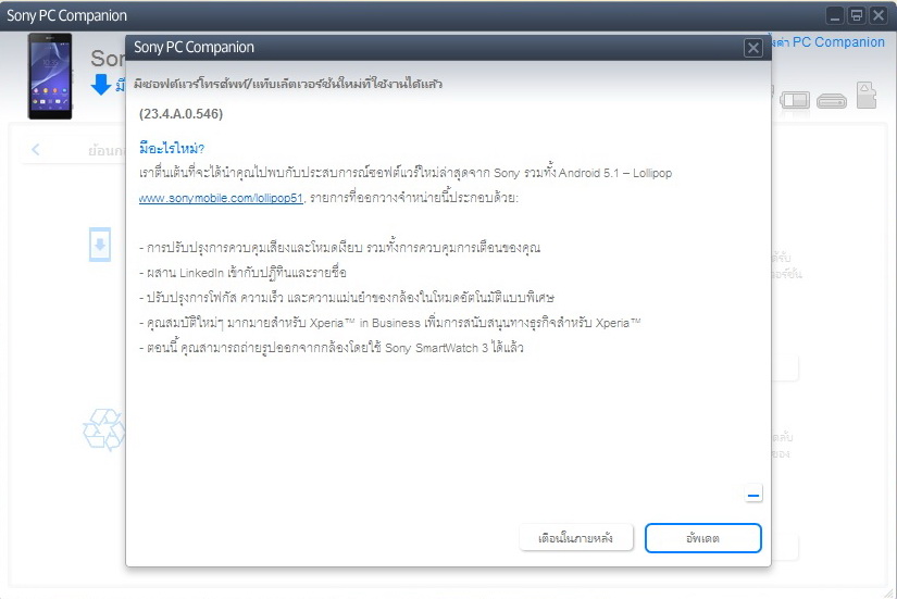 Firmware Update สำหรับ Sony Xperia Z2 ปล่อยให้ Update ผ่าน Sony PC Companion แล้วครับ