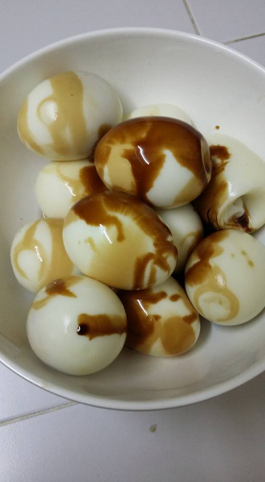 2.จากนั้นนำ..ไข่ที่ต้มแล้วมาคลุกกับซีอิ้วดำ