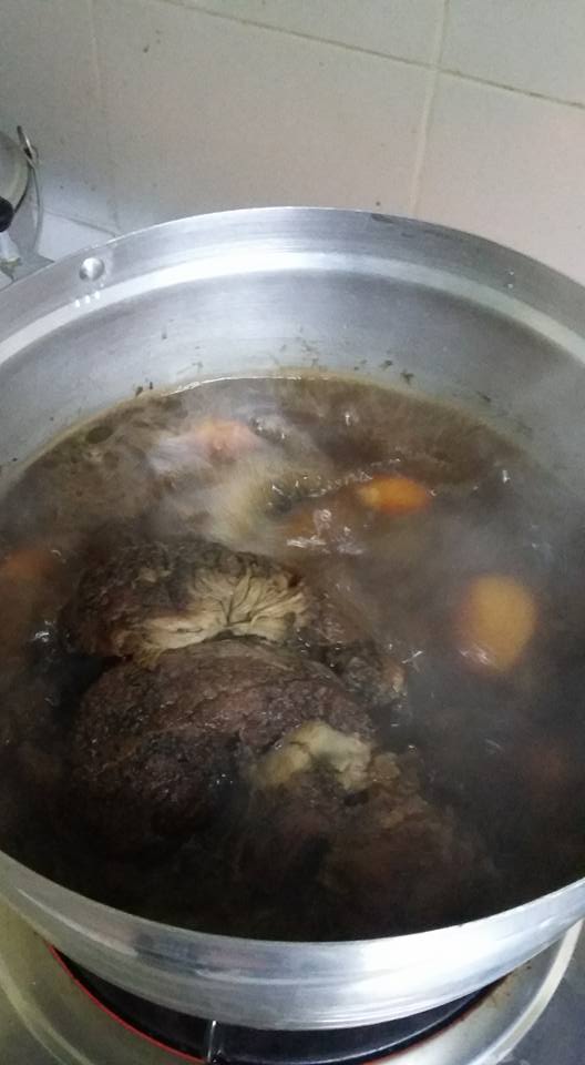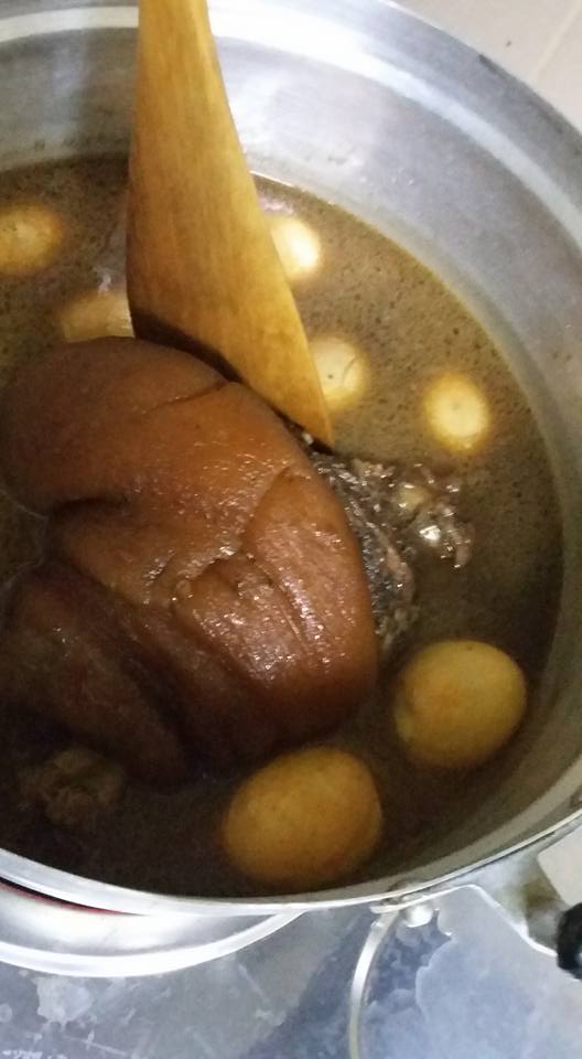 1.เริ่มจากเอาพะโล้ขาหมูไปตุ๋นหรือต้ม