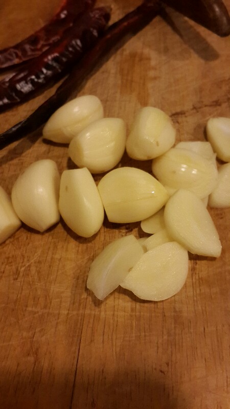 เริ่มกันเลยดีกว่า ปอกกระเทียม แล้วฝานบางซะ คะน้าเหลือๆ ก็จับมาหั่นๆ ๆๆ