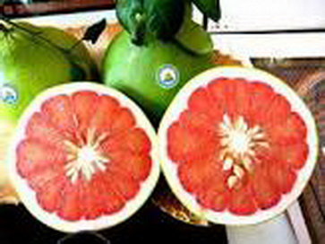 ผลไม้ส้มโอ ทับทิมสยาม จากบูธแสดงสินค้าของอำเภอปากพนัง จังหวัดนครศรีธรรมราช