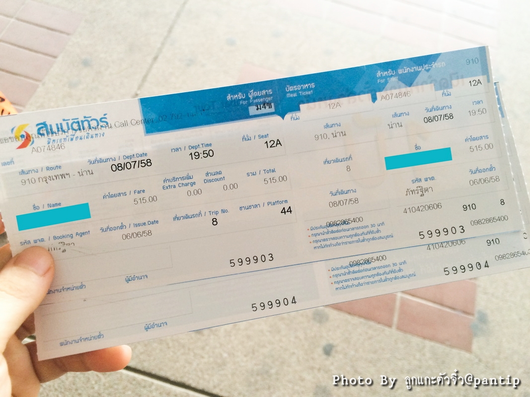 เริ่มต้นทริปช่วงเย็นค่ะ เราจองรถของสมบัติทัวร์เอาไว้ เป็นรถ ม.4ข นั่งจากหมอชิตไปลงตัวเมืองน่านได้เลยค่ะ ราคา 515 บาท รอบรถเวลา 19.50 น. ค่ะ